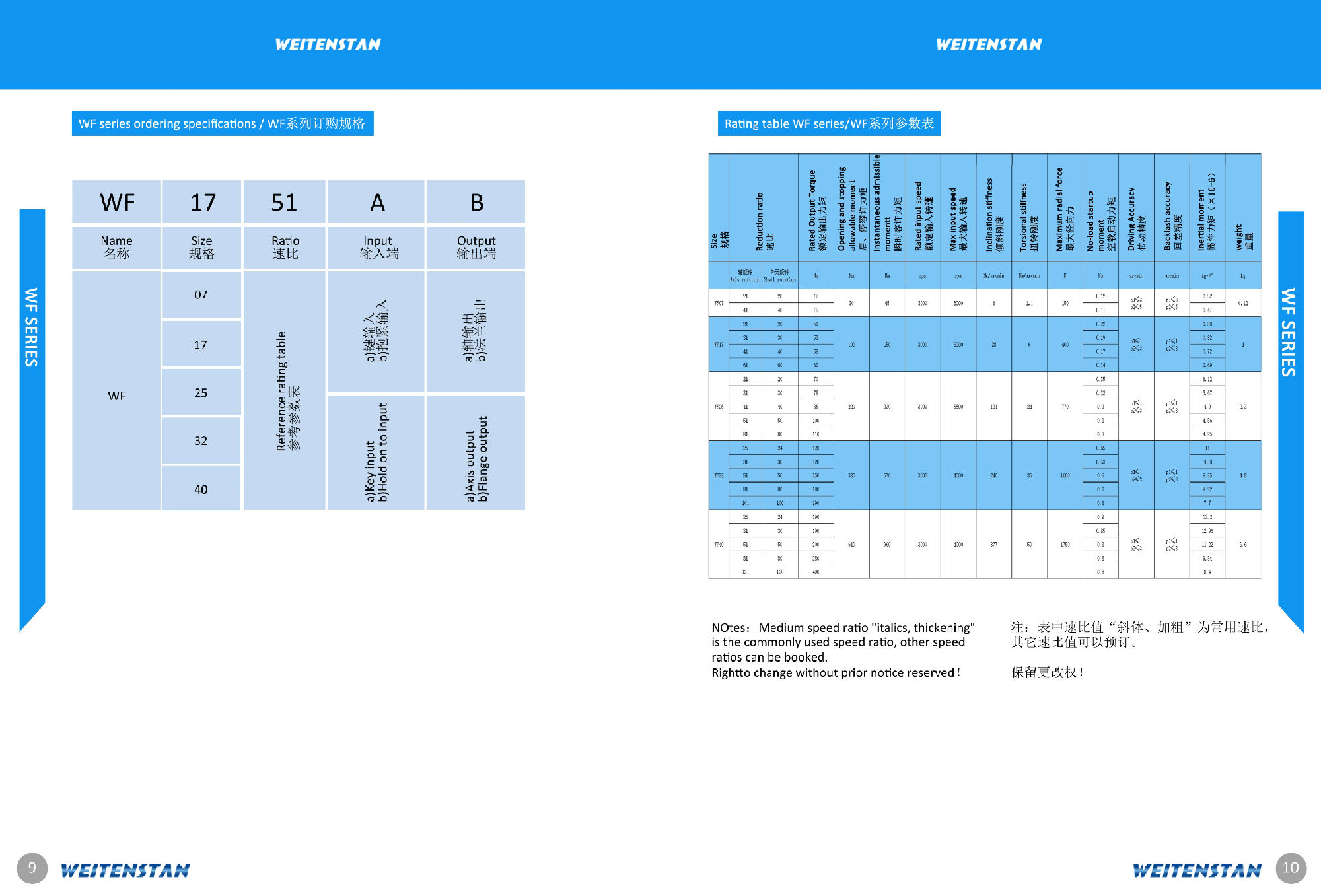 具有傳動效率高、工作平穩、噪聲低、結構緊湊、重量輕、體積小、使用可靠、壽命長、減速比范圍大等優點。 輕量流線型設計、鋼質本體、機型輕薄短小、體積比傳統行星式減速器大幅縮小、可節省安裝空間。 真圓齒形、齒腹大、抗壓性強、不干涉不崩齒、可承受頻繁正逆轉和瞬間急停慣性沖擊。 雙排結構、負載分散、機理平衡、圓形齒輪設計、磨損小、噪音和溫升要比其他減速器低。
