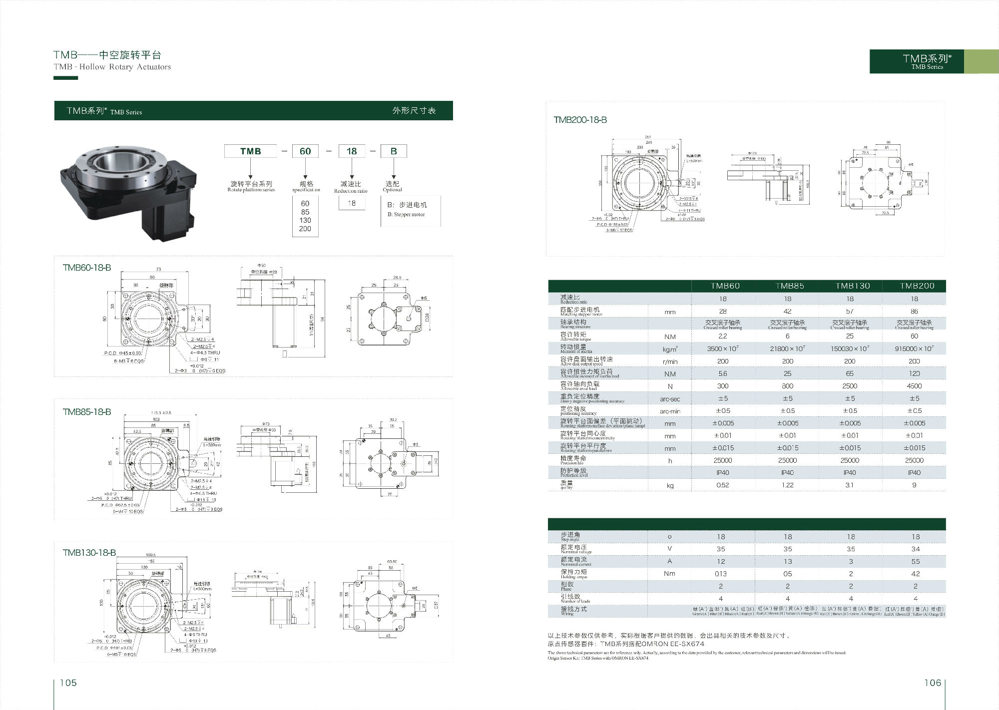 TMB中空旋轉(zhuǎn)平臺可采用不同廠家的伺服馬達(dá)驅(qū)動,精度高,運(yùn)轉(zhuǎn)動作平穩(wěn),盤面運(yùn)轉(zhuǎn)平穩(wěn),順暢且定位快速。