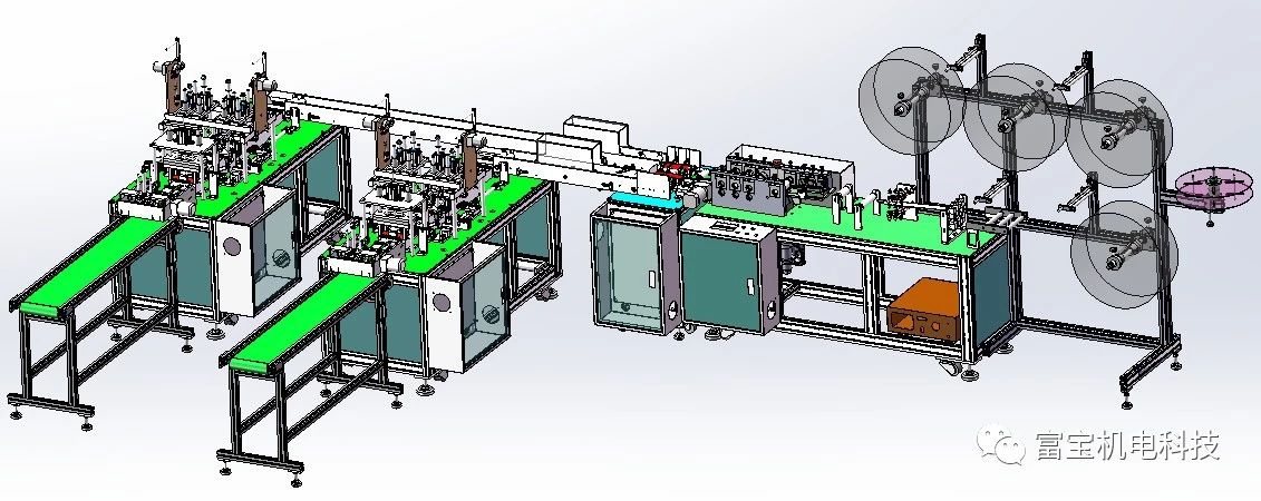 口罩機(jī)是將多層無紡布通過熱壓、折疊成型,超聲波焊接,廢料切除,耳帶鼻梁條焊接等工序制造出具有一定過濾性能的各種口罩,口罩設(shè)備不是單臺(tái)的機(jī)器,它需要多臺(tái)機(jī)器的配合完成各種不同的工序。面對這么多的工序,口罩機(jī)能做到每0.5秒一個(gè)一次性口罩!