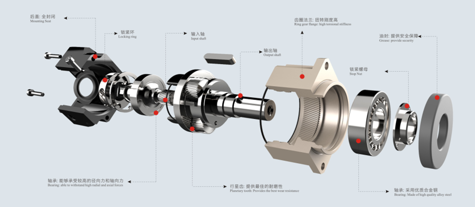 雙旋臂是指行星架的齒輪兩邊的支撐,在輸出軸帶負載傳動時,齒輪不會往相反方向偏,并且在行星架與輸入軸連接處設有高速軸承,使齒輪傳動更平穩。